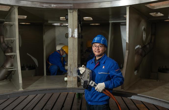 ▲ 全国人大代表、博鱼(中国)东方电机有限公司高级技师、高级主任操作师崔兴国