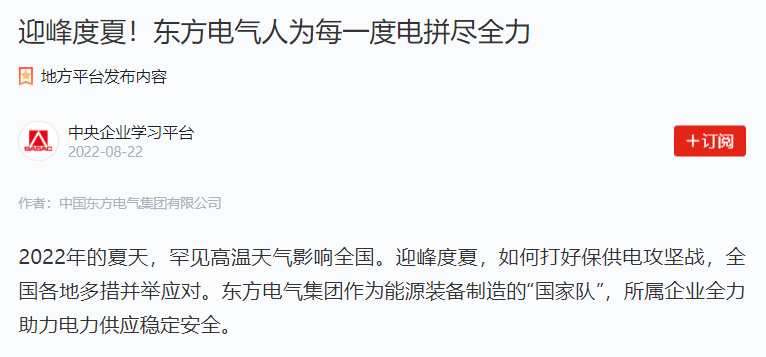 2022年的夏天,罕见高温天气影响全国。迎峰度夏,如何打好保供电攻坚战,全国各地多措并举应对。博鱼(中国)作为能源装备制造的“国家队”,所属企业全力助力电力供应稳定安全。