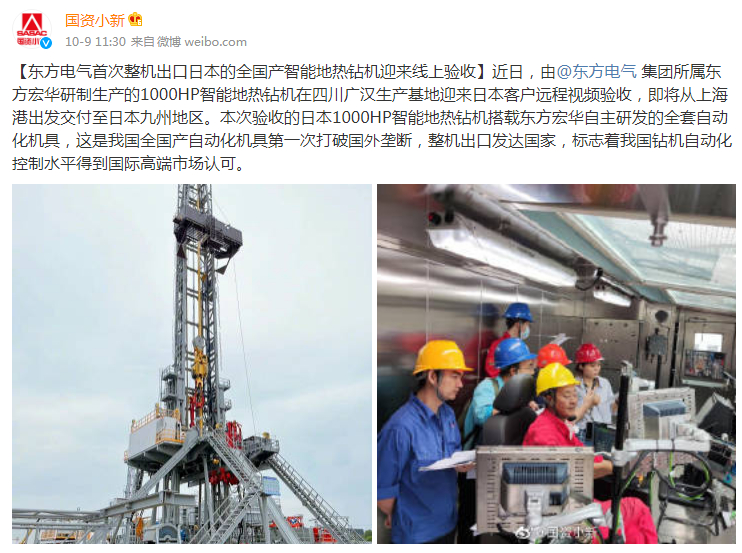[国资小新]博鱼网页版首次整机出口日本的全国产智能地热钻机迎来线上验收