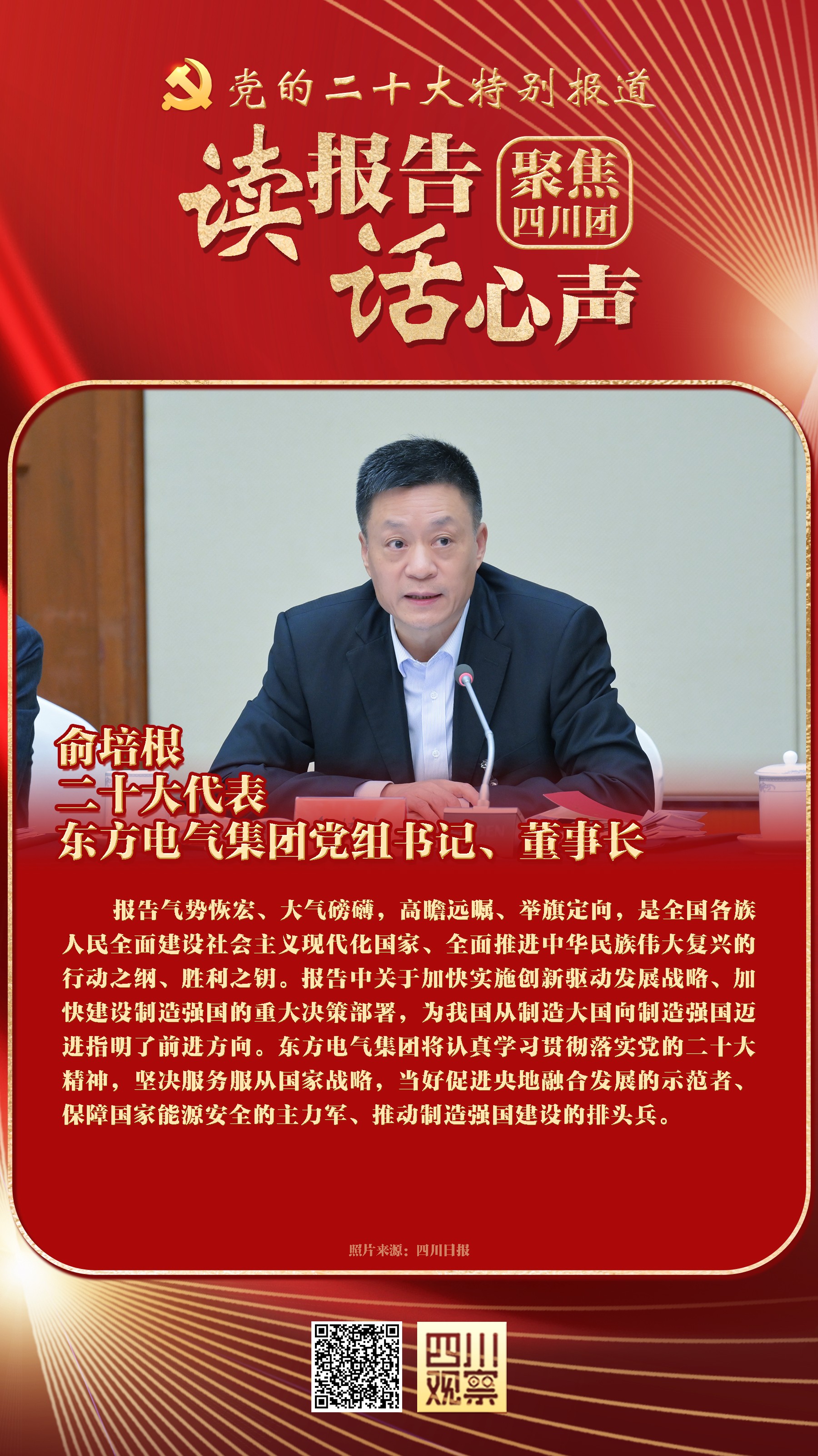 俞培根代表说,报告气势恢宏、大气磅礴,高瞻远瞩、举旗定向,是全国各族人民全面建设社会主义现代化国家、全面推进中华民族伟大复兴的行动之纲、胜利之钥。报告中关于加快实施创新驱动发展战略、加快建设制造强国的重大决策部署,为我国从制造大国向制造强国迈进指明了前进方向。博鱼(中国)将认真学习贯彻落实党的二十大精神,坚决服务服从国家战略,当好促进央地融合发展的示范者、保障国家能源安全的主力军、推动制造强国建设的排头兵。