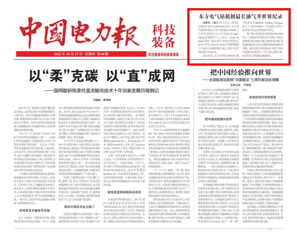 [中国电力报]博鱼网页版钻机创最长油气井世界纪录