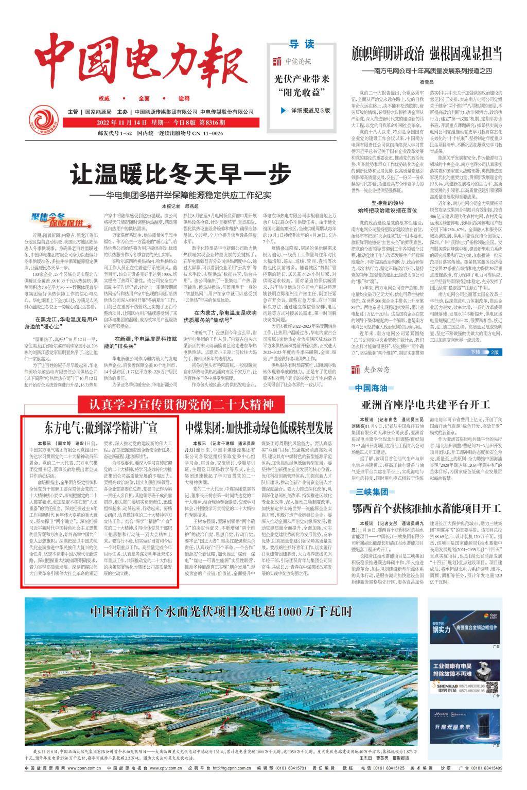 俞培根要求,要深入学习宣传贯彻党的二十大精神,将学习成效转化为推进集团公司高质量发展的不竭动力。要提高政治站位,切实加强组织领导。各企业党委要负总责,党委书记作为第一责任人亲自抓,其他领导班子成员靠前抓,相关部门要切实负起责任,迅速组织起来、动员起来、行动起来。要精心组织,认真做好党的二十大精神学习宣传工作。结合“深学”“精讲”“广宣”党的二十大精神,引导全体党员干部职工把思想和行动统一到大会精神上来。要笃行不怠,切实做好当前和今后一个时期重点工作。高质量完成今年目标任务,认真思考谋划明年及未来5年重点工作,共同推动党的二十大作出的决策部署转化为集团公司高质量发展的生动实践。