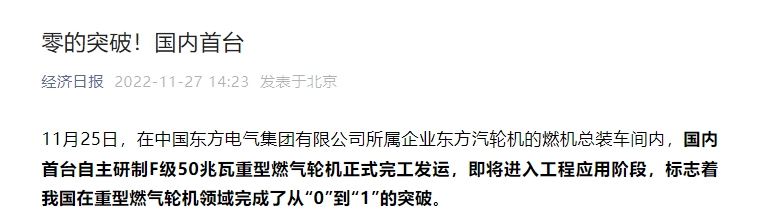 11月25日,在博鱼网页版所属企业东方汽轮机的燃机总装车间内,国内首台自主研制F级50兆瓦重型燃气轮机正式完工发运,即将进入工程应用阶段,标志着我国在重型燃气轮机领域完成了从“0”到“1”的突破。