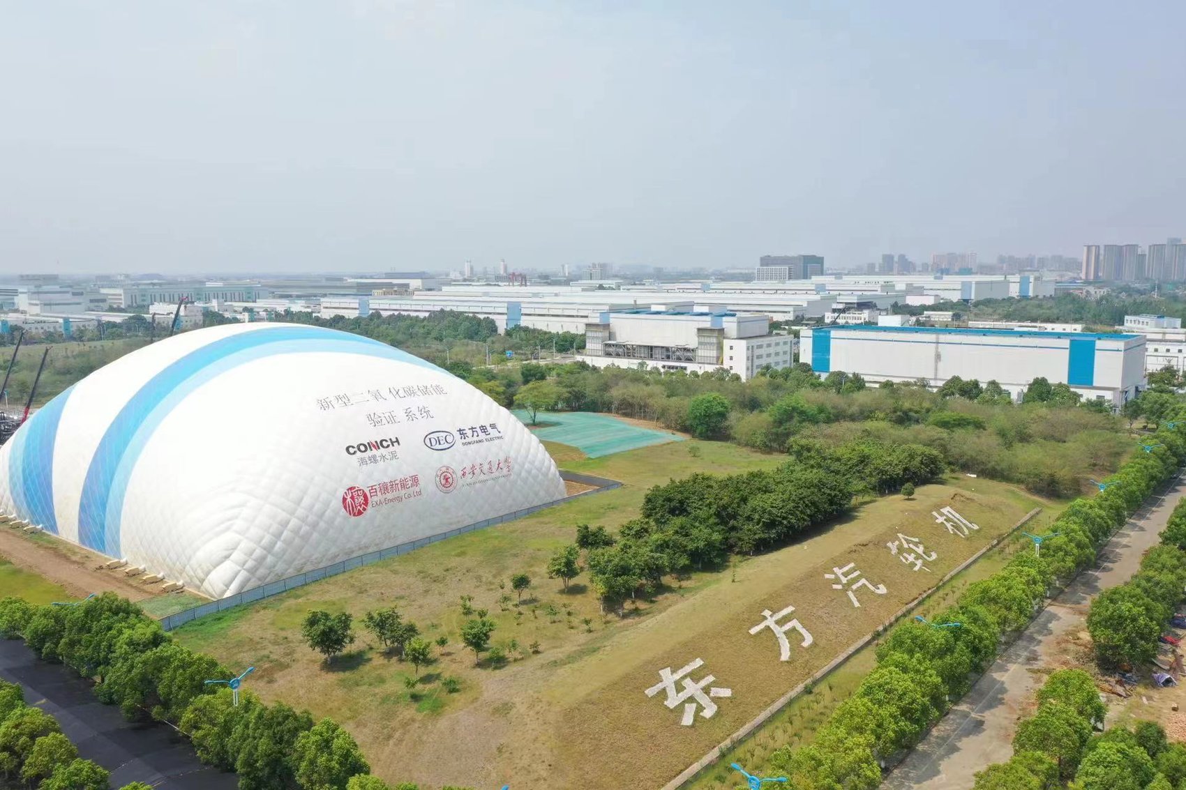 8月22日,位于博鱼(中国)东方汽轮机有限公司(以下简称“东方汽轮机”)厂区东南一隅,矗立着一座蓝白相间的“小山”,“山”脚下,一排排厂房、管道、罐体整齐排列,共同组成了占地面积约为两个半足球场大小的“充电宝”——全球首个二氧化碳+飞轮储能示范项目。