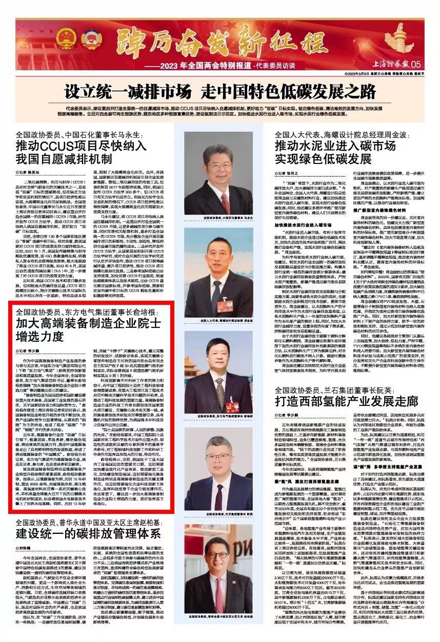 [上海证券报]全国政协委员俞培根:加大高端装备制造企业院士增选力度