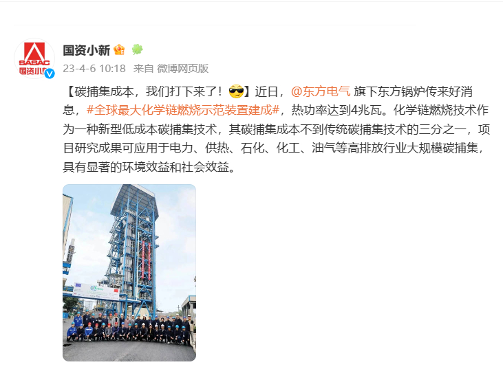 [国资委网站]全球最大化学链燃烧示范装置建成