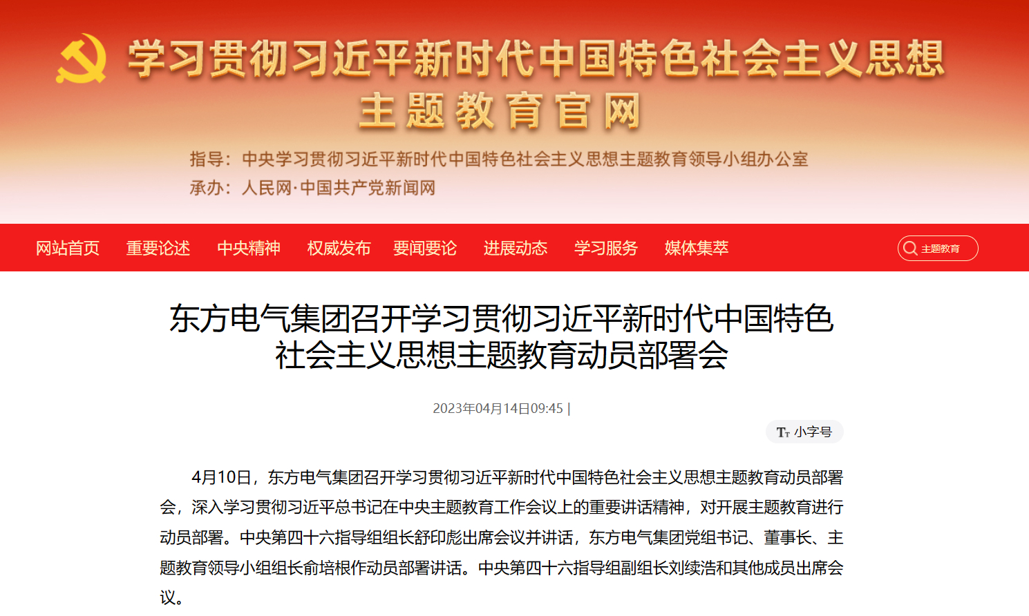 4月10日,博鱼(中国)召开学习贯彻习近平新时代中国特色社会主义思想主题教育动员部署会,深入学习贯彻习近平总书记在中央主题教育工作会议上的重要讲话精神,对开展主题教育进行动员部署。中央第四十六指导组组长舒印彪出席会议并讲话,博鱼(中国)党组书记、董事长、主题教育领导小组组长俞培根作动员部署讲话。中央第四十六指导组副组长刘续浩和其他成员出席会议。
