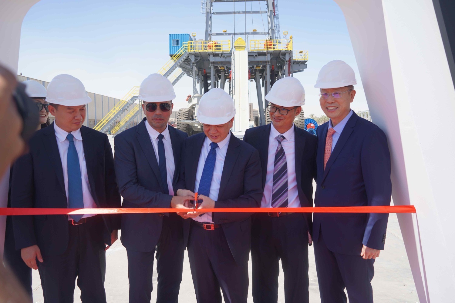 这是6月27日拍摄的埃及造首套2000马力全自动拖挂陆地石油钻机剪彩仪式。(新华社记者姚兵 摄)