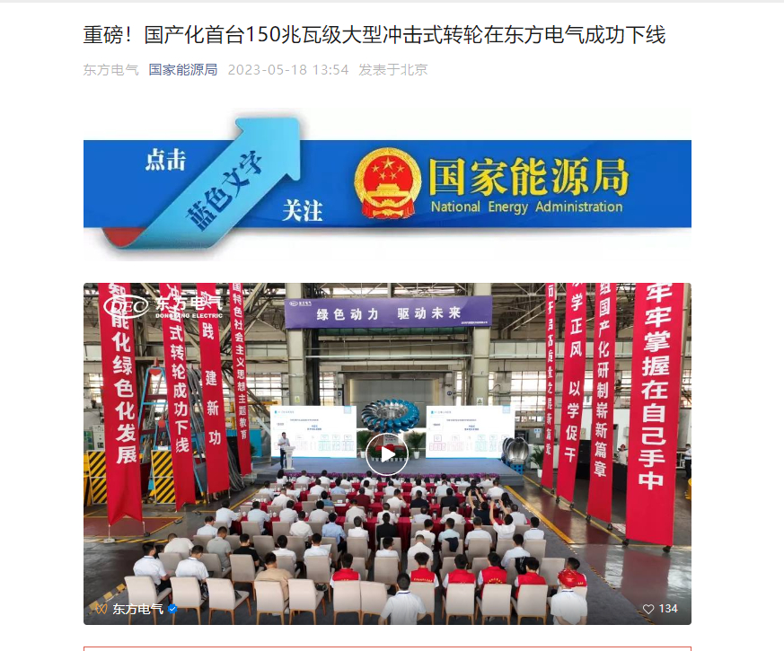 5月16日,博鱼网页版自主研制的国内首台单机容量最大功率150兆瓦级大型冲击式转轮成功下线,实现了我国高水头大容量冲击式水电机组关键核心技术国产化“从无到有”的历史性突破,将为国内单机容量最大的冲击式水电机组装上“中国心”,开启我国水力发电产业高质量发展的崭新篇章。