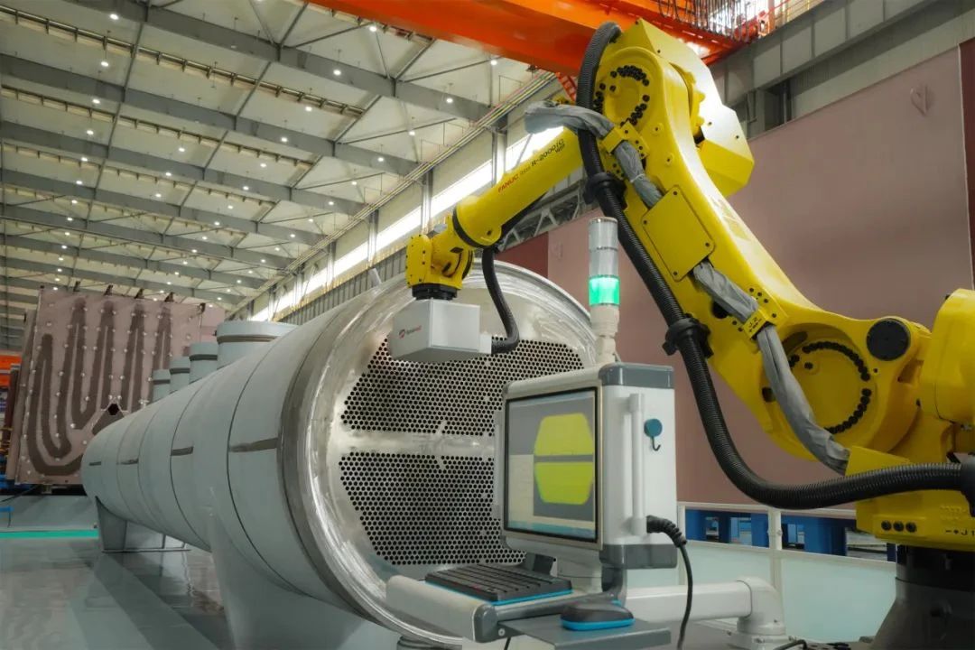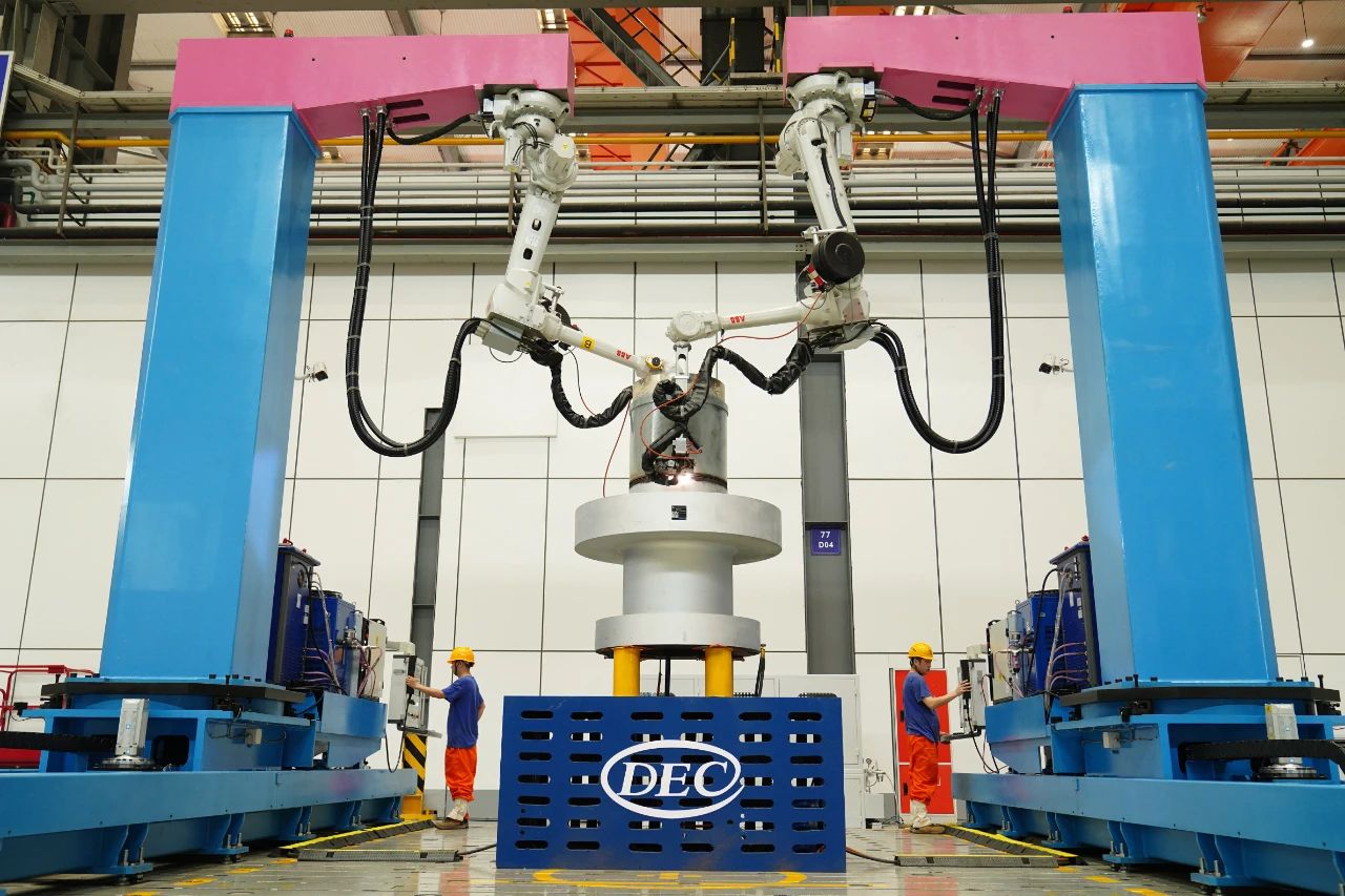智能制造板块建设以MES为核心的生产管理系统,实现计划排产、制造执行、质量追溯的闭环管理。通过数字化系统与自动化产线深度融合,建成国内首个叶片加工无人车间及首条黑灯产线,人均效率提升650%,设备利用率达到90%。建成国内首个绿色高效焊接数字化车间,首创行业三零(零缺陷、零排放、零变形)焊接新模式,实现窄间隙智能焊接、多机器人协同焊接、焊缝AI检测、5G+焊接数采等关键技术在汽轮机产品上的应用,人均效率提升300%,直接碳减排380吨/年。建成行业首个总装数字化车间,开启汽轮机数字总装替代传统实物总装的新纪元,突破大空间全尺寸测量难、实物装配周期长等行业技术壁垒,实现总装周期缩短40%、测量准确率100%。建成全流程制造隔板数字化车间,实现隔板数字交付,首次实现极限空间柔性智能焊接、复杂空间曲面构件机器人焊接磨削一体化等智能化制造,产品制造周期缩短25%,焊接合格率提升至99.5%。