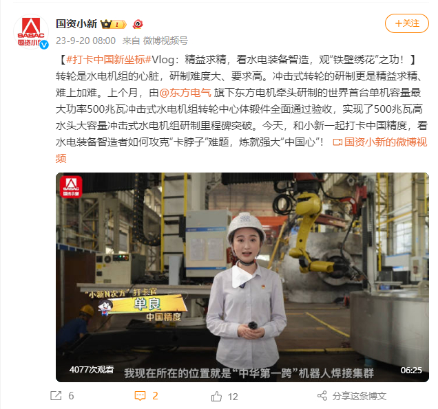 [国资小新]#打卡中国新坐标#Vlog:精益求精,看水电装备智造,观“铁壁绣花”之功!