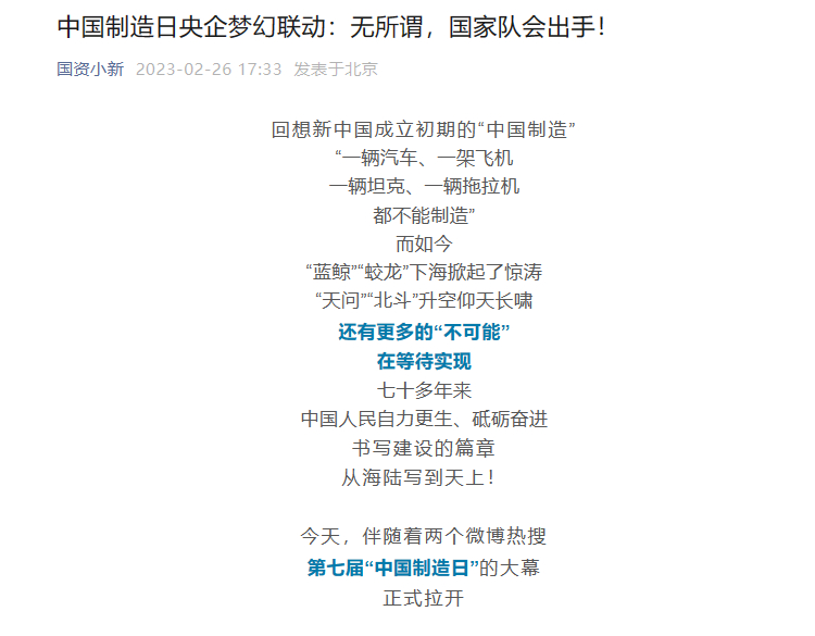 [国资小新]中国制造日央企梦幻联动:无所谓,国家队会出手!