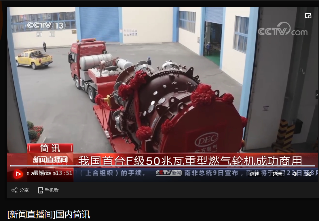 [央视新闻直播间]我国首台F级50兆瓦重型燃气轮机成功商用