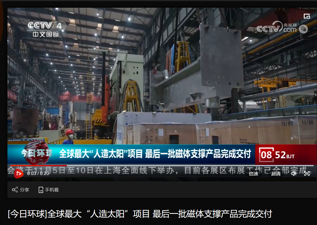 [央视今日环球]全球最大“人造太阳”项目 最后一批磁体支撑产品完成交付
