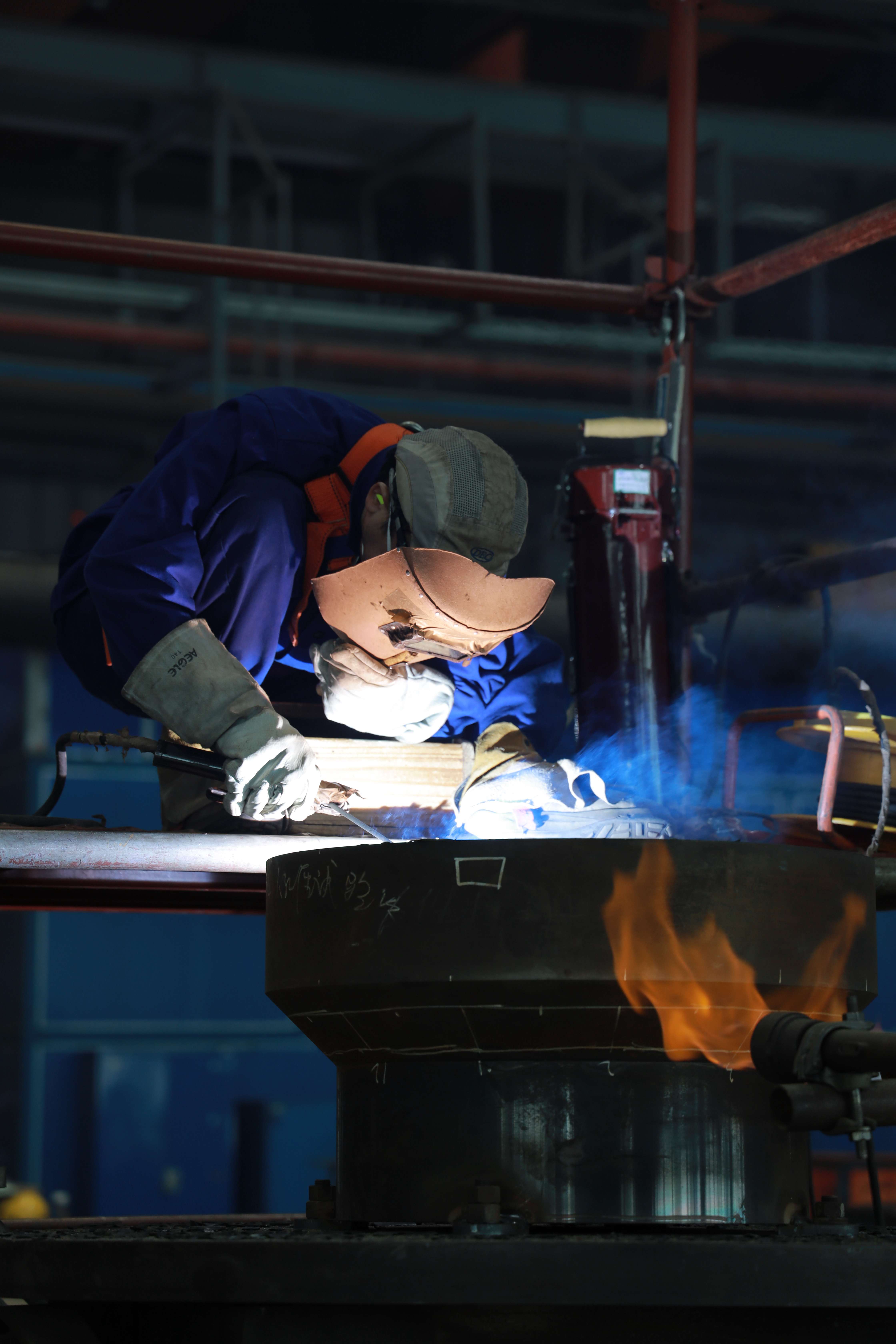 秋日胜春朝,奋斗正当时。集团旗下东方重机一线职工正在焊接核电设备部件,红色火苗和蓝色弧光交相辉映,是奋战金秋的最美风景。