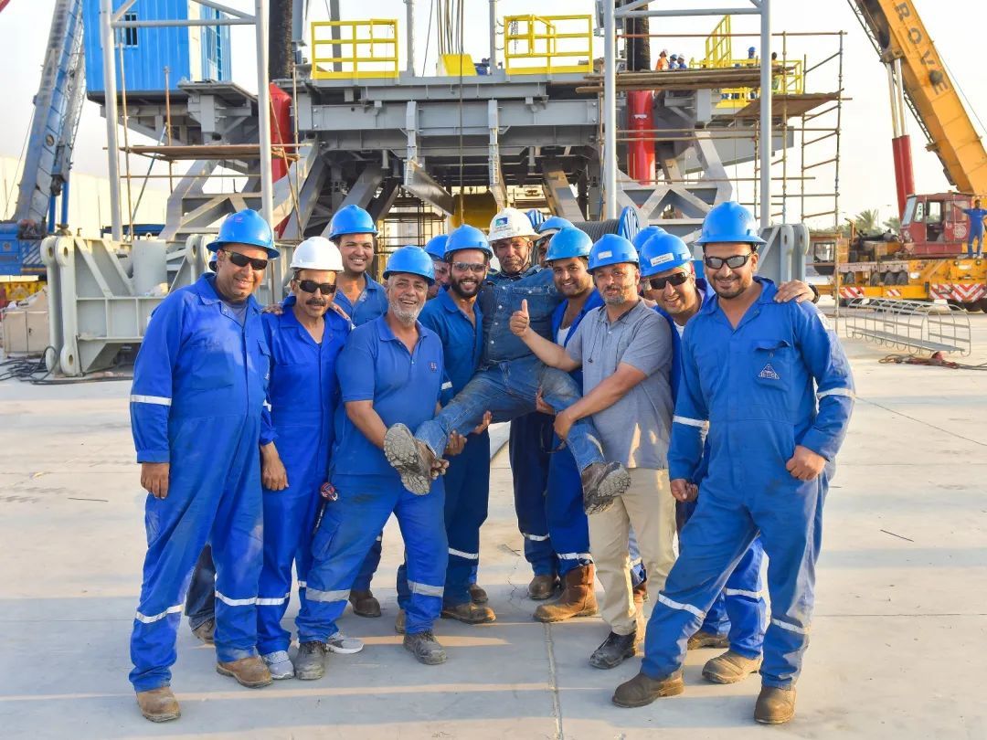 在首套钻机成功下线时,激动不已的埃及雇员们,在这套钻机下互相拥抱、合影。互相托举庆祝的他们,脸上有笑容,也有泪光。