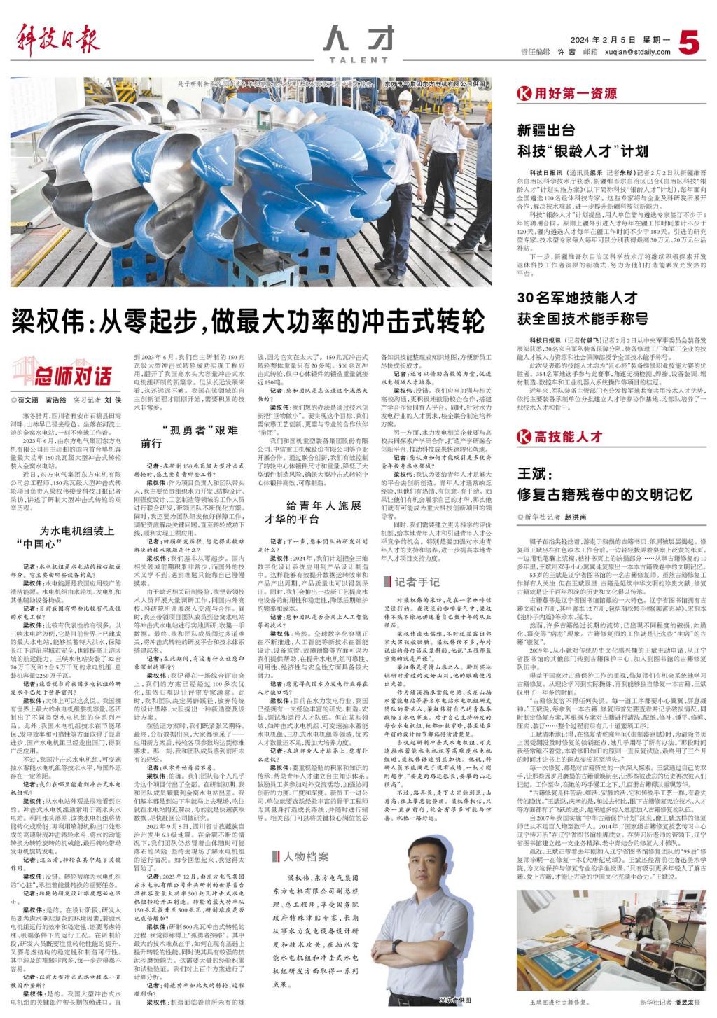 近日,博鱼(中国)东方电机有限公司总工程师、150兆瓦级大型冲击式转轮项目负责人梁权伟接受科技日报记者采访,讲述了研制大型冲击式转轮的艰辛历程。