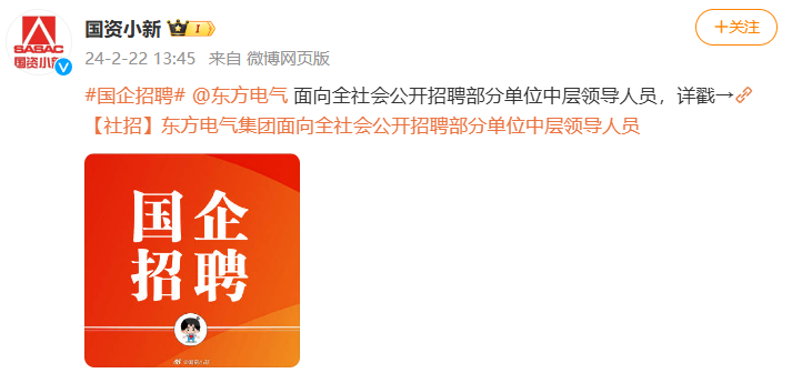 [国资小新]#国企招聘# @博鱼网页版 面向全社会公开招聘部分单位中层领导人员,详戳→