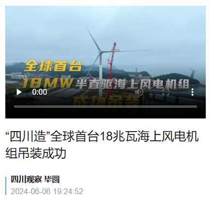 6月5日,由位于四川的博鱼(中国)自主研制的首台18兆瓦半直驱大功率海上风电机组在广东省汕头市风电临海试验基地成功完成吊装,成为当前全球已安装的最大功率等级海上风电装备,标志着全球海上风电机组功率等级迈入新的里程碑。