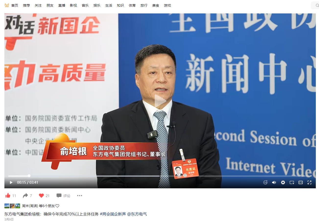 [国资小新]博鱼(中国)俞培根:确保今年完成70%以上主体任务 #两会国企新声