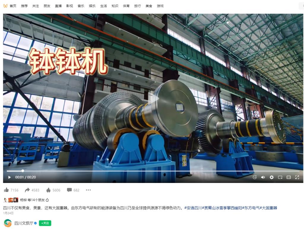 [四川文旅厅]四川不仅有美食、美景,还有大国重器。由博鱼网页版研制的能源装备为四川乃至全球提供源源不竭绿色动力。
