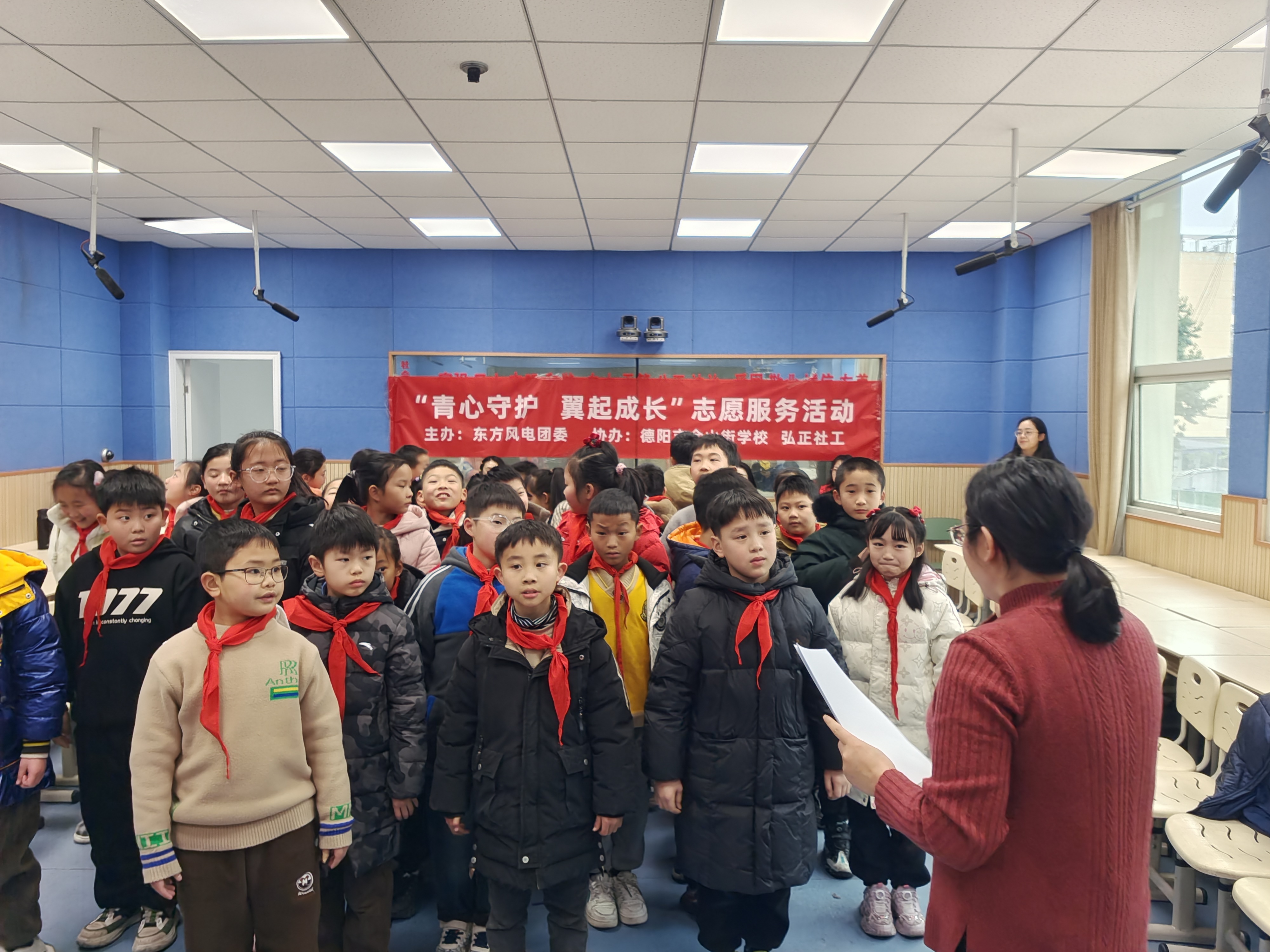 东方风电团委组织青年志愿者走进德阳市金山街学校开展励志教育活动。心理咨询师和团员青年们一起,带领儿童们开展“情绪表达”心理团辅活动,通过语言引导和游戏互动,提升儿童的情绪管控和表达能力。