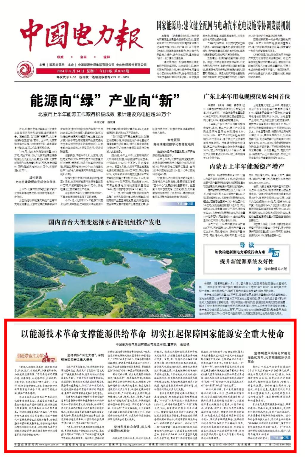 [中国电力报]以能源技术革命支撑能源供给革命 切实担负起新时代保障国家能源安全重大使命