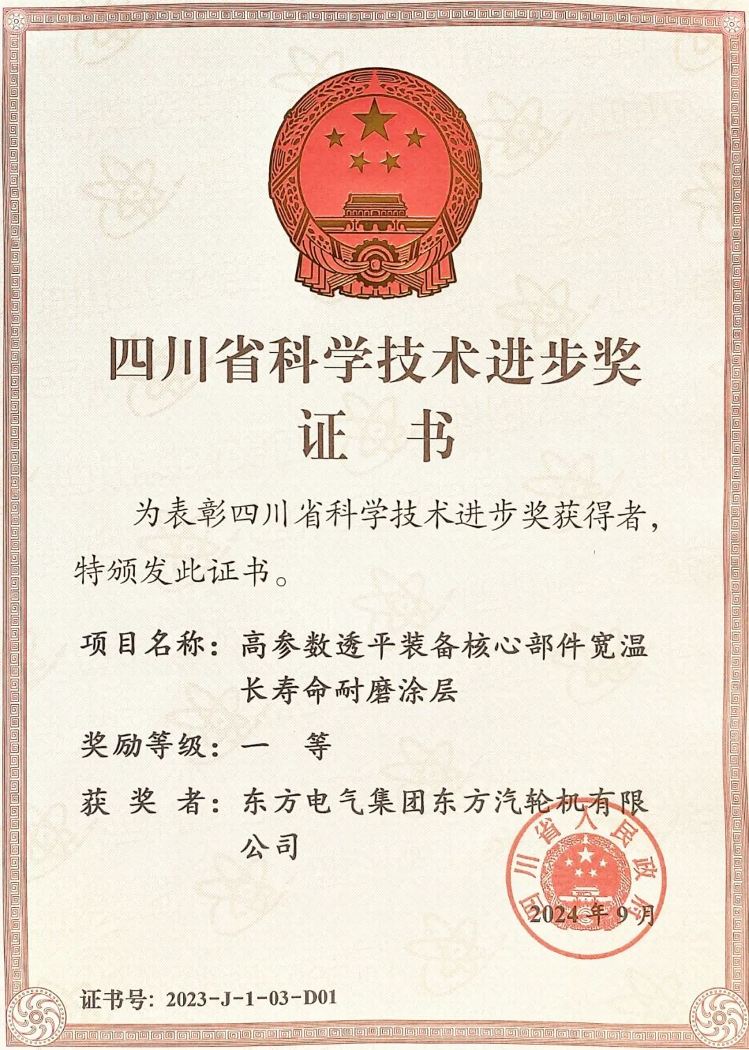 项目以国家工业强基等重点项目为支撑,联合四川大学、西南交通大学组成产学研用团队,历时十余年,攻克了涂层正向设计、考核验证、工程制备等难题。成果已应用于200余台高参数汽轮机等多类产品,打破了国外技术垄断和封锁,攻克了多个能源装备领域关键技术难题,助力实现国家能源电力装备的自主可控。