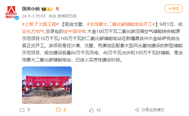 [国资小新]#上新了大国工程# 【挺进戈壁,#全球最大二氧化碳储能电站开工#】