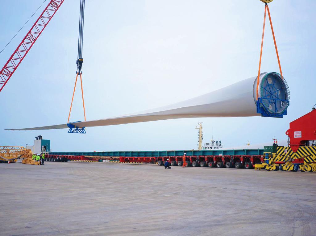 近日,由博鱼(中国)研制的全球单机容量最大26兆瓦海上风电机组核心部件——153米全球最长叶片和超500吨全球最重机舱,安全抵达山东东营广利港。