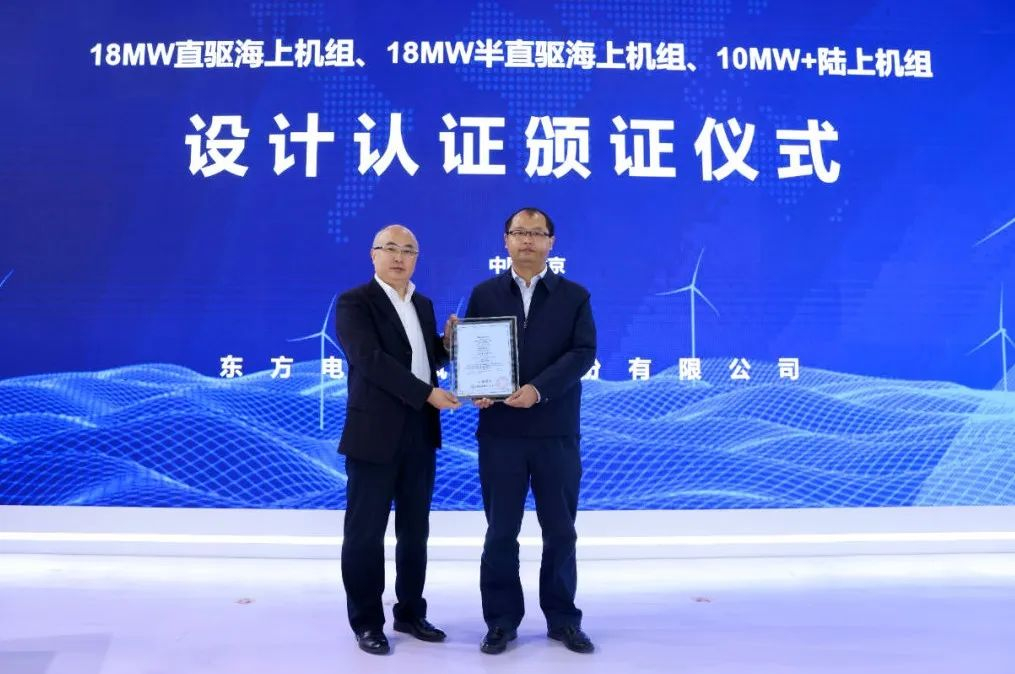 10月17日,在2023年北京国际风能大会暨展览会上,博鱼网页版风电股份有限公司正式发布了18MW直驱海上风电机组、18MW半直驱海上风电机组、10MW+陆上风电机组三款新产品,这三款机型是东方风电适应我国风电大型化、平价化发展需求最新开发的旗舰产品。展会上,博鱼网页版风电股份有限公司组织开展了相关专题技术交流,三款新产品同时获得中国质量认证中心颁发的设计认证证书。