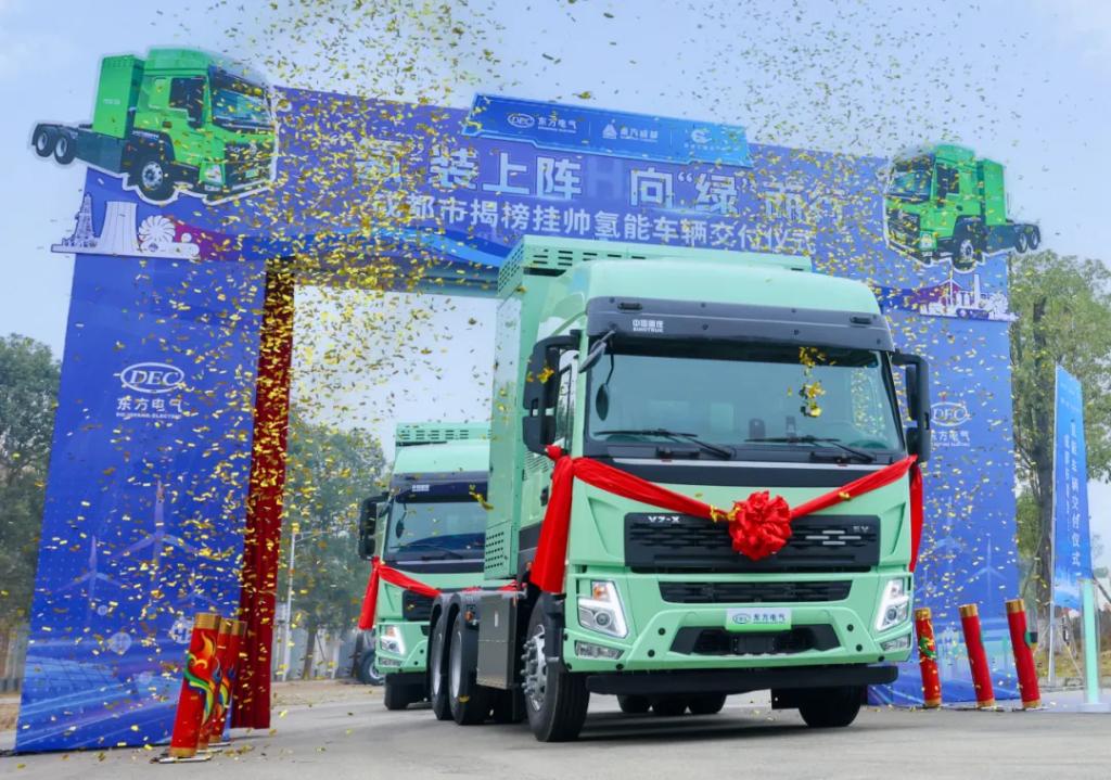 在成都市2024年“揭榜挂帅”项目中,东方氢能作为示范应用联合体牵头企业,成功摘得4.5吨物流车、18吨物流车、18吨环卫车、31吨混凝土搅拌车、31吨自卸车、49吨重卡以及公交车等7类车型示范,目前已完成了全部车型燃料电池系统的制造与交付,质量检验全部合格。