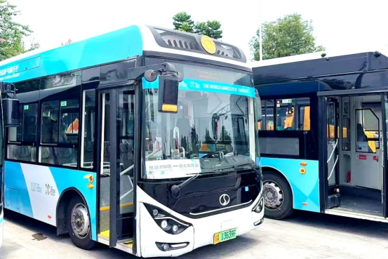 为践行成都世运会绿色低碳办赛理念,这批氢能公交车通过“氢”和“氧”的电化学反应产生电能从而驱动车辆,全程只产生水,真正实现零排放。