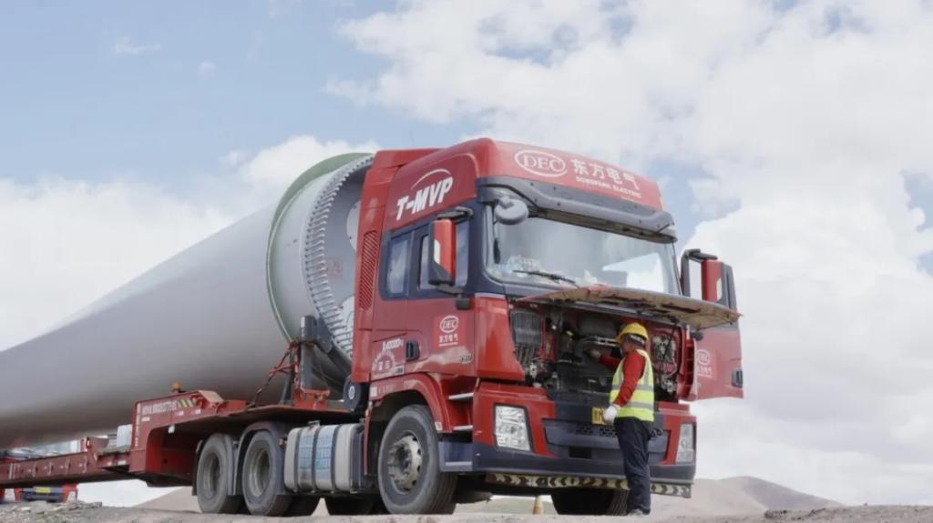 一波未平,一波又起。7月5日下午4时许,车队抵达那曲路段,韩婷婷接到头车司机电话,“因近期西藏大雨,原先规划的运输路段遇到道路修复施工,绕道则需耗费大量时间,叶片很可能无法按期驶入高速运输”。得知突发状况,东方镖师团队立即与当地交警部门取得联系,详细说明情况并请求协助。地方交警部门迅速启动应急响应机制,调派了清障车和人力前往现场,对叶片运输保障提供了有力支持。