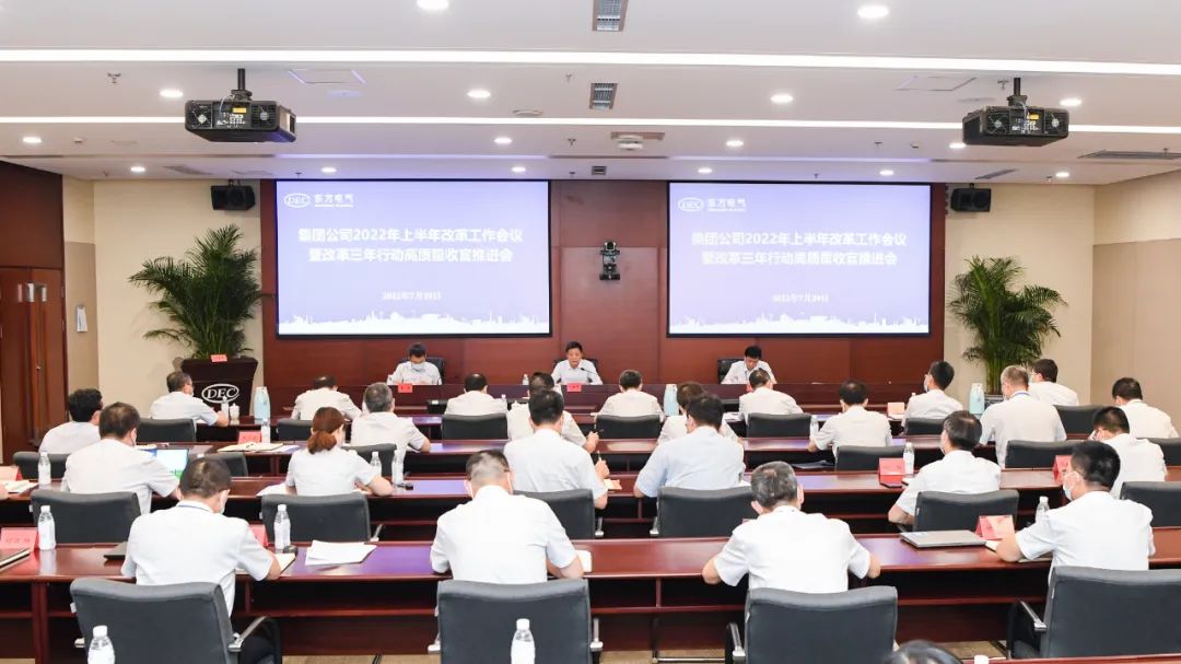 会议通报了集团公司改革三年行动总体完成情况及2022年上半年推进情况,对改革三年行动高质量收官工作进行部署。集团公司所属东方电机、东方汽轮机、东方锅炉、东方风电、东方国际、东方宏华六家企业就改革三年行动进展情况及推进高质量收官举措进行了交流发言。