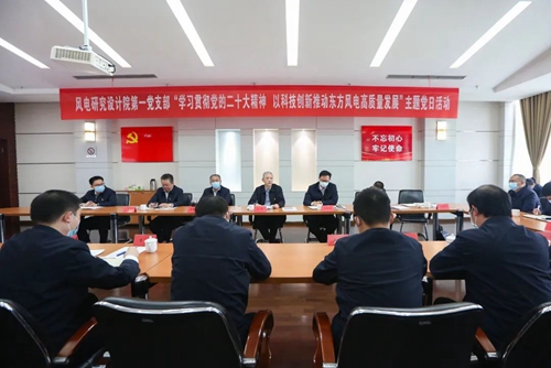 徐鹏强调,要认真贯彻落实《中共中央关于认真学习宣传贯彻党的二十大精神的决定》和集团公司党组部署要求,充分认识学习宣传贯彻党的二十大精神的重大意义,全面准确学习领会党的二十大精神,创新形式加强学习宣传,深刻领会党的二十大精神核心要义。要充分认识提升研发能力水平是以实际行动践行“两个维护”、落实集团公司“11256”发展战略、推进风电产业高质量发展的必然要求,站在担当新征程新使命的政治高度,不断激发广大党员干部职工奋进新征程、建功新时代的豪情壮志。