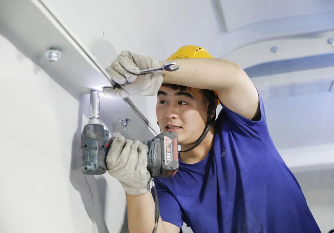 ◆东方国际尼泊尔山涧水电项目职工正在进行电缆桥架安装工作