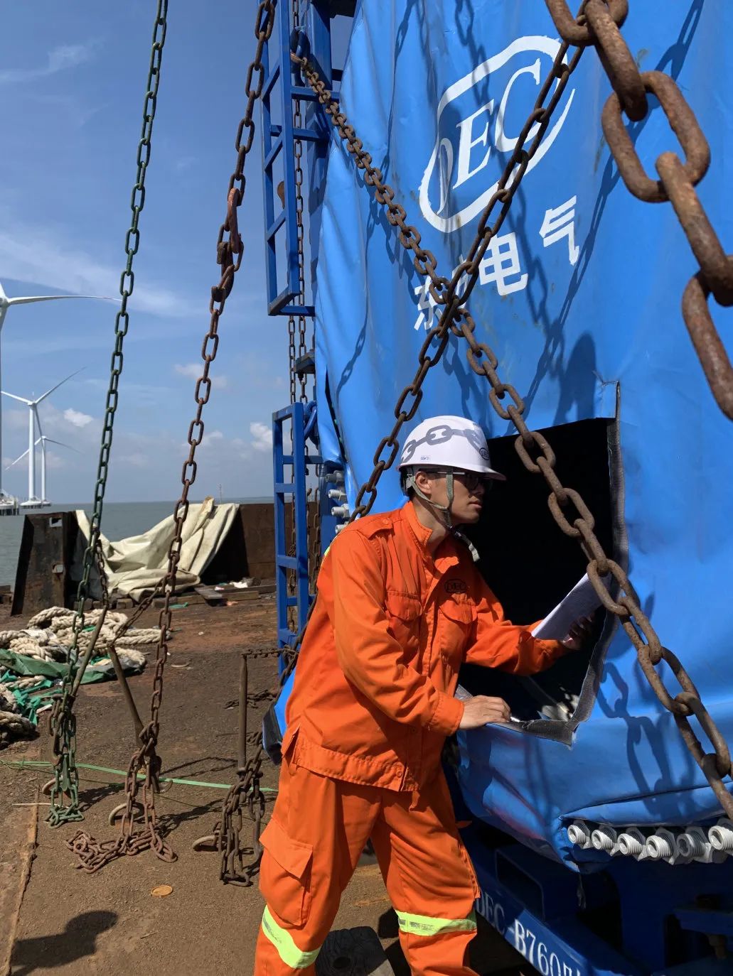◆东方国际职工正在核对越南长海3期海上风电项目相关数据,协调风机吊装工作