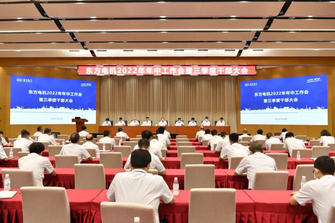 7月28日,东方电机召开2022年年中工作会暨三季度干部大会,传达贯彻落实集团年中工作会议精神,全面总结企业上半年工作,安排部署下半年各项重点工作,确保全面完成年度各项目标任务,以优异成绩迎接党的二十大胜利召开。会议要求坚持目标导向,全力推动生产经营,确保全年指标如期完成;坚持结果导向,狠抓工作落实,确保各项任务取得成效;坚持问题导向,聚焦安全质量,为企业高质量发展提供保障;加强基础管理,夯实企业高质量发展根基,全力助推集团公司建设世界一流电气集团。
