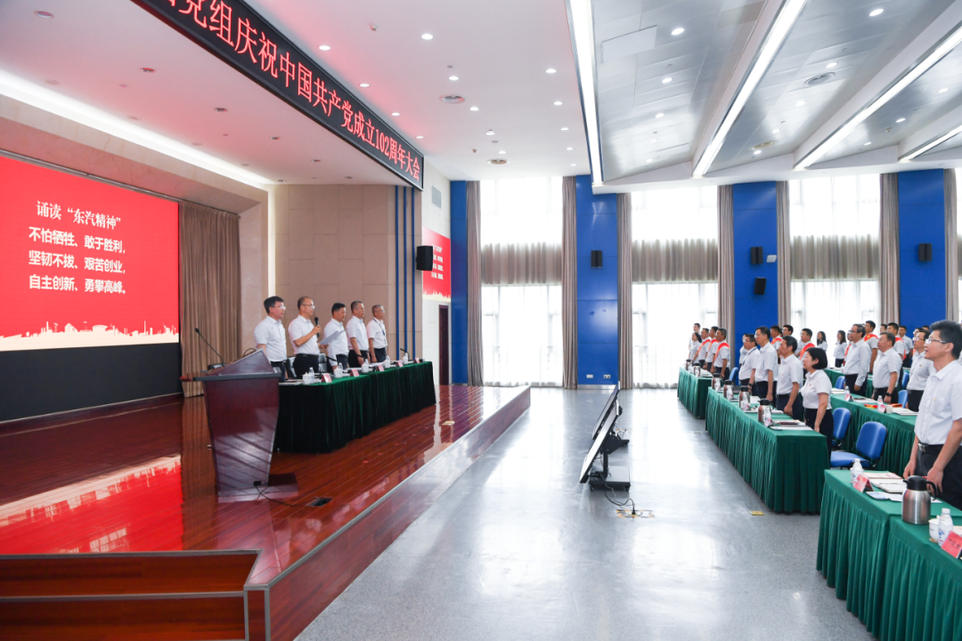 会前,全体参会人员诵读“东汽精神”。面向党旗,新党员代表入党宣誓,全体参会党员重温入党誓词。会议发布了《集团公司党建与生产经营深度融合“四级五步五法”工作导则》,表彰了集团公司“东方心”党建与生产经营十大融合项目和十大融合模范。会议表彰了集团公司乡村振兴先进集体和个人。“东方心”党建与生产经营十大融合项目代表和融合模范代表进行了交流发言。