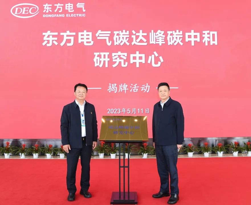 集团公司党组书记、董事长俞培根与双碳研究中心负责人共同为双碳研究中心揭牌。双碳研究中心设在东方研究院,由东方研究院负责建设和日常管理工作。