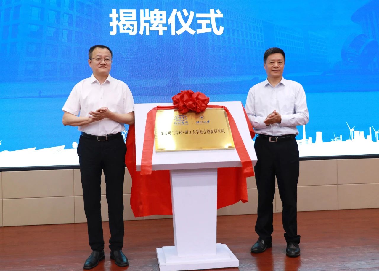 博鱼(中国)党组书记、董事长俞培根,浙江大学校长、党委副书记杜江峰共同为联合创新研究院揭牌。