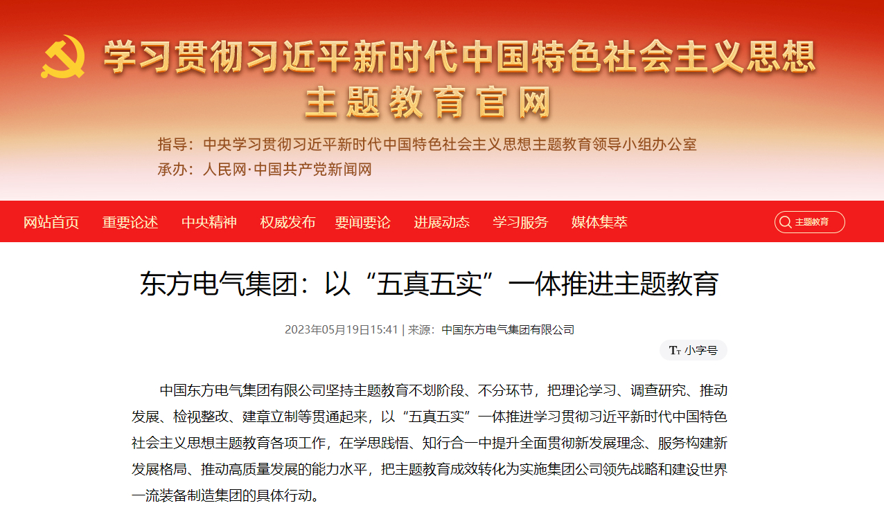 集团旗下东方电机策划并张榜红色沙龙、红色家书、红色故事分享等八个“揭榜领办”任务,号召有能力、有实力的基层党组织结合公司要求,找准党建与中心工作融合点,积极“揭榜”,主动“领办”,推动主题教育更加生动鲜活、更加富有成效。东方锅炉把主题教育红色研学课堂搬到“中国革命的摇篮”井冈山,通过专题讲座、现场教学、情景体验和研讨交流等方式,把书本学、实践学、现场学贯通起来,努力在以学铸魂、以学增智、以学正风、以学促干方面取得实实在在的成效。东方物产充分利用主题教育8种学习材料组织开展领导干部带头学、党群纪检人员主动学、先进个人引领学的“三个先学”读书活动,扎实开展理论学习。