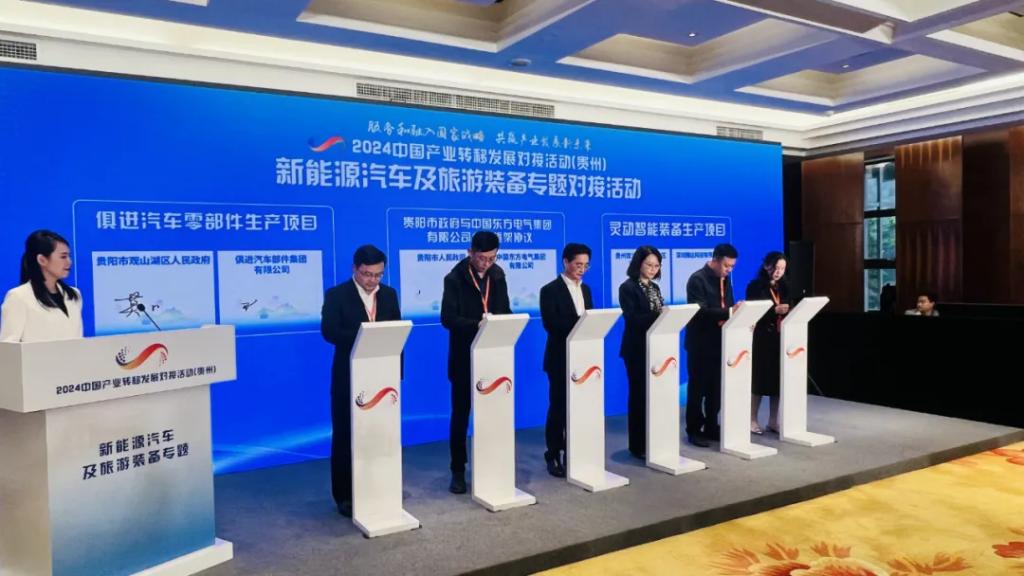 2024中国产业转移发展对接活动(贵州)以“服务和融入国家战略 共赢产业发展新未来”为主题,包括1场综合活动和4场专题活动,围绕资源精深加工及综合利用、先进装备制造、大数据电子信息、特色轻工等贵州特色优势产业,开展地市推介、政企对接、实地考察、专家解读、项目签约等。在新能源汽车及旅游装备专题对接活动中,博鱼(中国)与贵阳市人民政府签署了战略合作框架协议。