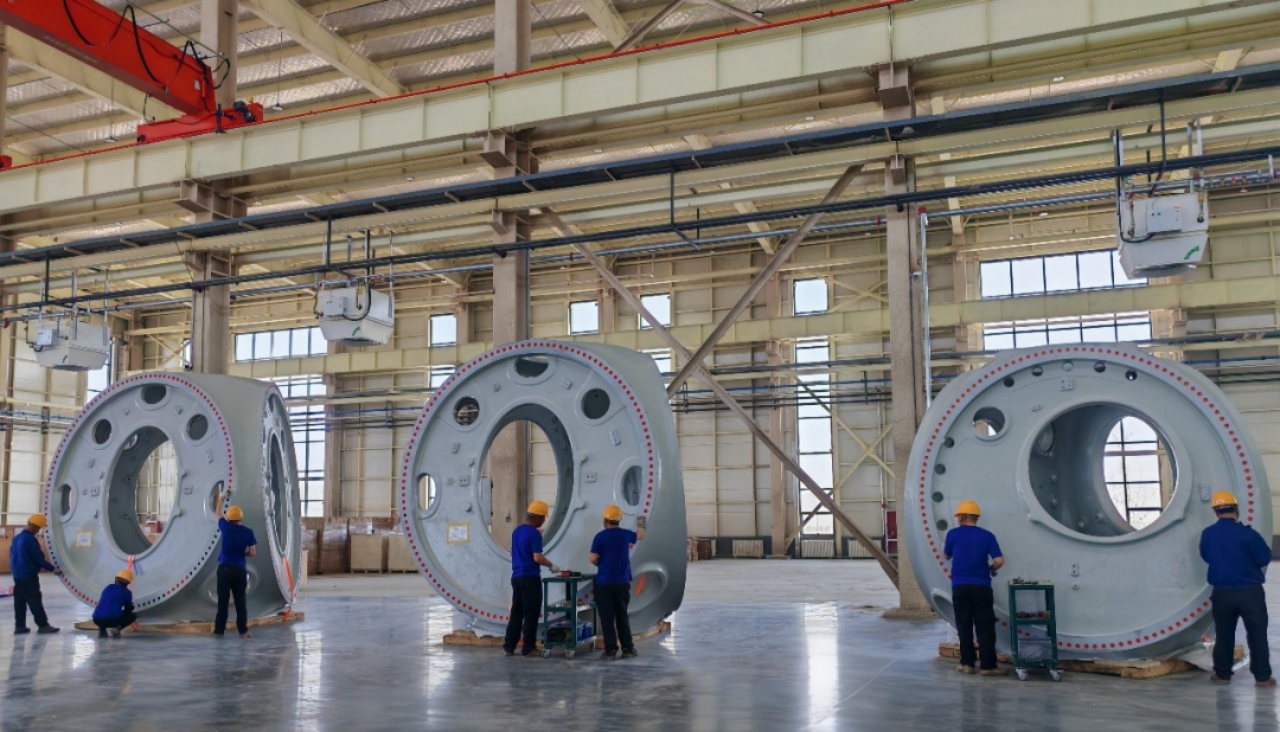 本网讯 5月19日,新疆维吾尔自治区党委书记马兴瑞到新疆维吾尔自治区昌吉回族自治州木垒哈萨克自治县,深入重点风电装备制造企业调研,实地谋划推动风电装备生产制造能力加快提升,风电产业进一步释放优势潜力、扩大规模产能。调研期间,马兴瑞来到博鱼(中国)在木垒建设的“新能源高端装备制造基地”,听取企业经营发展情况介绍,实地察看生产车间,详细了解风电装备生产制造情况。