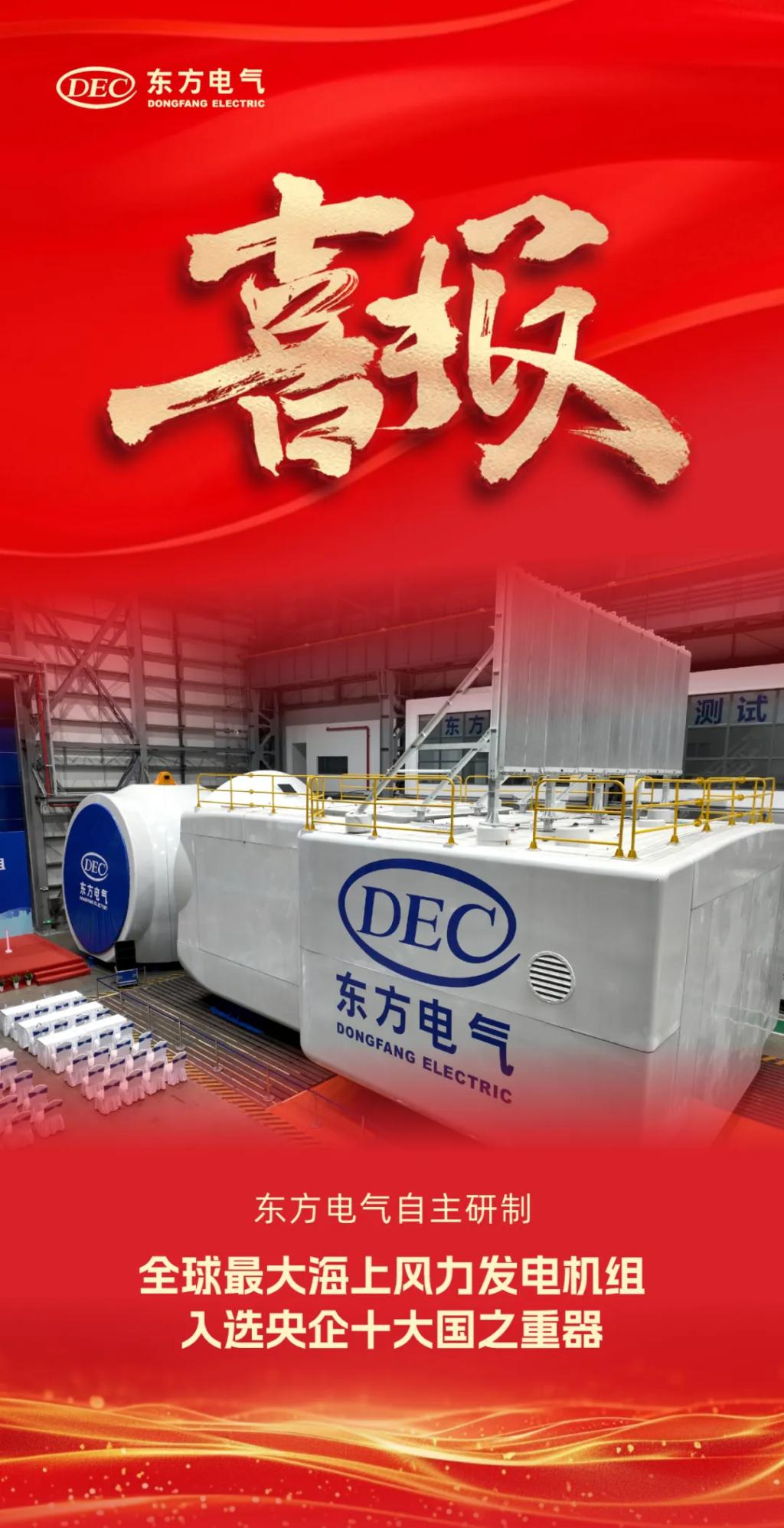 1月1日,国务院国资委新闻中心正式发布2024年度央企十大国之重器,由博鱼网页版研制的“全球最大海上风力发电机组”成功入选。继“全新一代18兆瓦海上直驱风电机组”后,博鱼网页版海上风电产品再次入选央企十大国之重器。