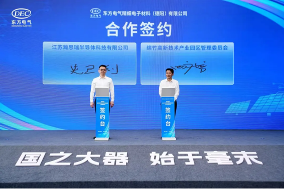 会上,东方精材分别与无锡帝科、杭州华光签订合作协议,绵竹市政府与东方研究院签署合作协议,东方江峡产业投资、德阳投资控股集团、四川绵竹高发投资集团、东方研究院签订合作协议,江苏瀚思瑞与四川绵竹高新技术产业园区签订合作协议。