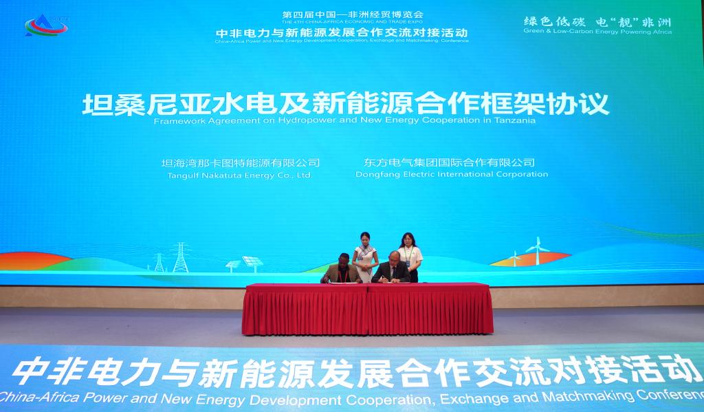 在成果发布及项目签约环节,东方国际与坦桑尼亚Tangulf Nakatuta Energy Company Limited(TANECO)公司签署《坦桑尼亚水电及新能源合作框架协议》,双方将发挥各自行业优势,助力非洲能源绿色升级。