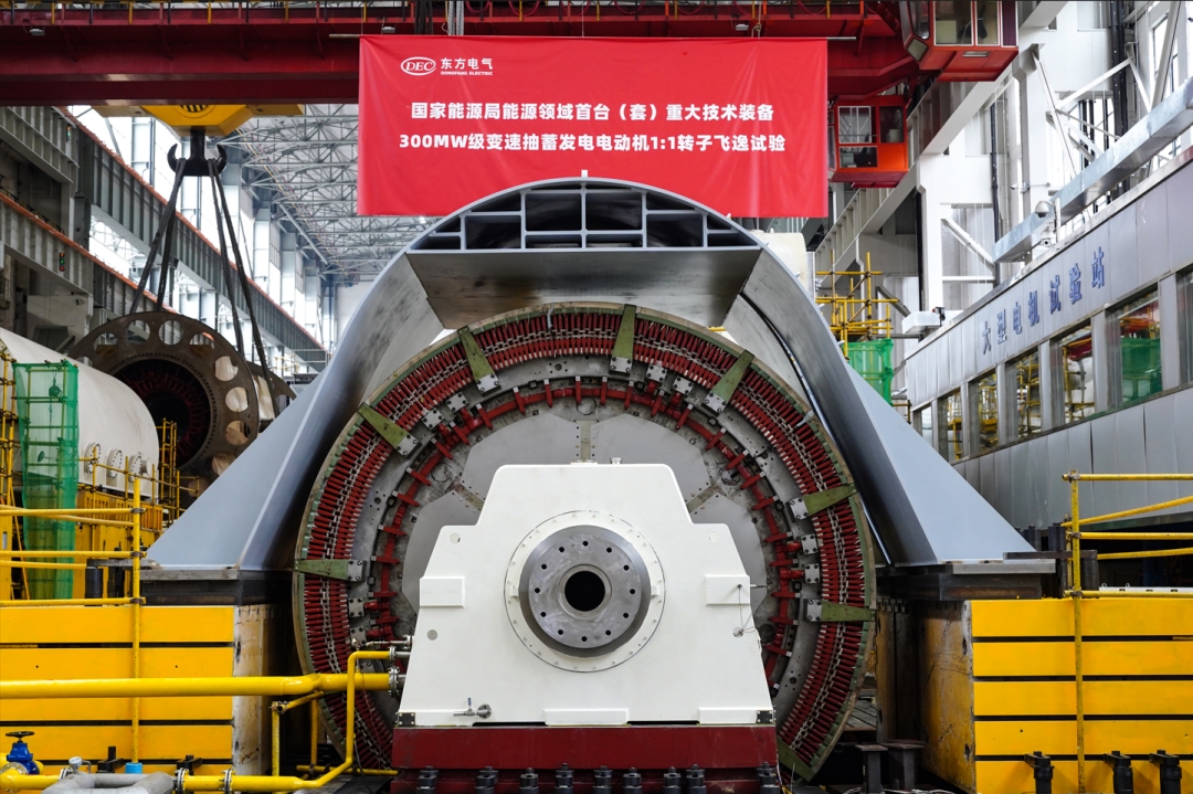 本网讯8月16日上午,国家能源局能源领域首台(套)重大技术装备项目——300兆瓦级变速抽水蓄能机组发电电动机1:1转子,在博鱼(中国)东方电机有限公司顺利通过飞逸试验,动态稳定性、可靠性等得到充分验证,标志着我国变速抽水蓄能机组自主研制取得重大突破!该转子创新采用端部整体护环固定结构,应用新型转子绕组接线方法,开发超大直径非...